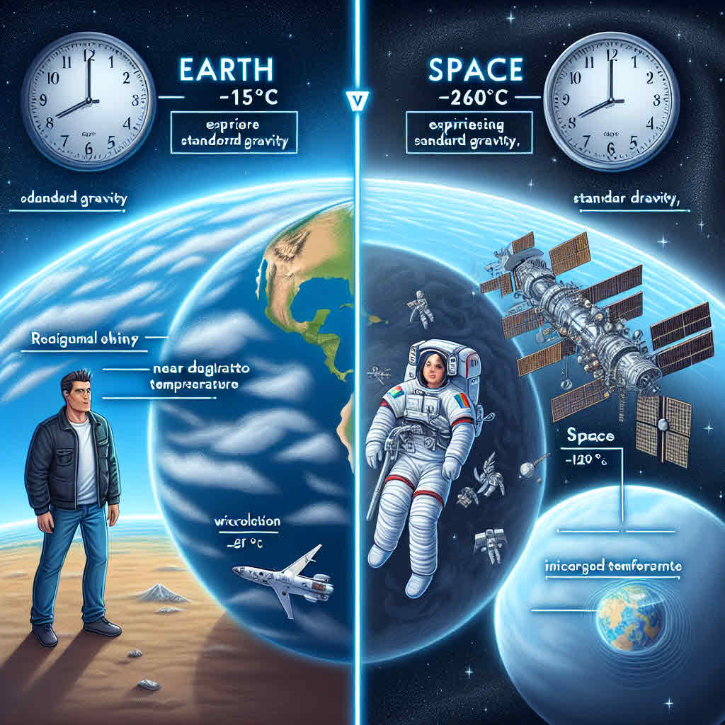 시간은 지구와 우주에서 다르게 흐릅니다. 이는 아인슈타인의 상대성 이론에 의해 설명될 수 있습니다. 상대성 이론에 따르면, 중력이 강한 곳에서는 시간이 느리게 흐르고, 중력이 약한 곳에서는 시간이 빠르게 흐릅니다.